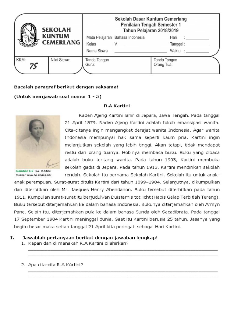 Soal Soal Tentang Kartini Beserta Jawabannya / Soal Soal Tentang Kartini Beserta Jawabannya Dalam Bahasa Inggris : 2 日前 contoh soal cerpen pilihan ganda beserta jawabannya kelas 11berikut contoh soal bindonesia kelas 11 semester satu kurikulum 2013 dengan kunci jawabannya bagian ke 7 dimulai dari soal nomor 61.. Try out un dan kunci jawaban (2015) | bung … Itulah tadi kumpulan soal pg tentang dongeng beserta jawabannyabagi anda yang ingin mengetahui contoh soal teks iklan beserta jawabannya silahkan lihat link di bawah ini. Sebelumnya kita sudah belajar contoh percakapan asking and giving opinion, kali ini kita berlatih soal asking and giving opinion yang biasanya diberikan di kelas 8 smp dan kelas 11 sma. Soal cerdas cermat ini terdiri dari 3 babak. Babak pertama adalah babak dimana setiap kelompok mendapat kan 5 pertanyaan.